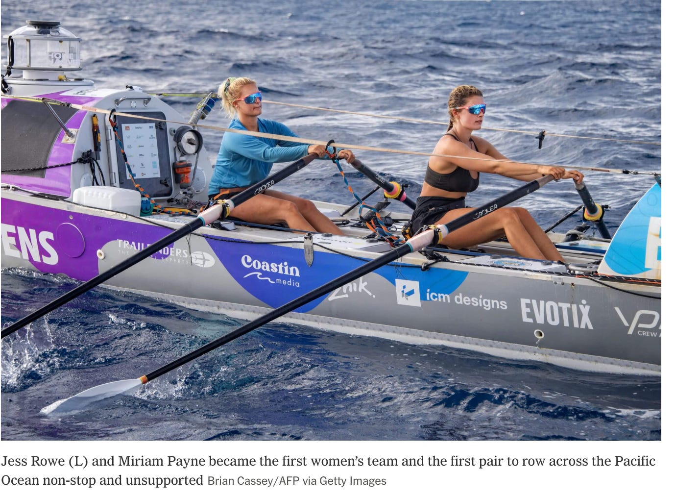 2. Jess Rowe and Miriam Payne became the first women’s team and the first pair to row across the Pacific Ocean non-stop and unsupported. (Source: nytimes.com)